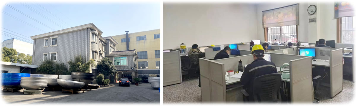 公司拥有现代化的新厂房车间建筑面积约15000平方米,及相应的制造和检测设备,拥有¢10000封头旋压机组、¢6500封头旋压机组、¢3200封头旋压机组、5000T双动油压机、2000T双动油压机、1000T双动油压机、500T双动油压机及其配套的自动焊接设备和自动数控切割设备,封头坡口机、及其整套的封头制造配套设施,如反射式燃油、燃气封头加热炉,电加热封头回火炉;封头测厚仪等检测计量工具齐全,理化室、探伤室、焊试室、焊材一、二级库(烘烤去湿设备)、零配件仓库达到规范要求。